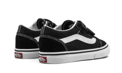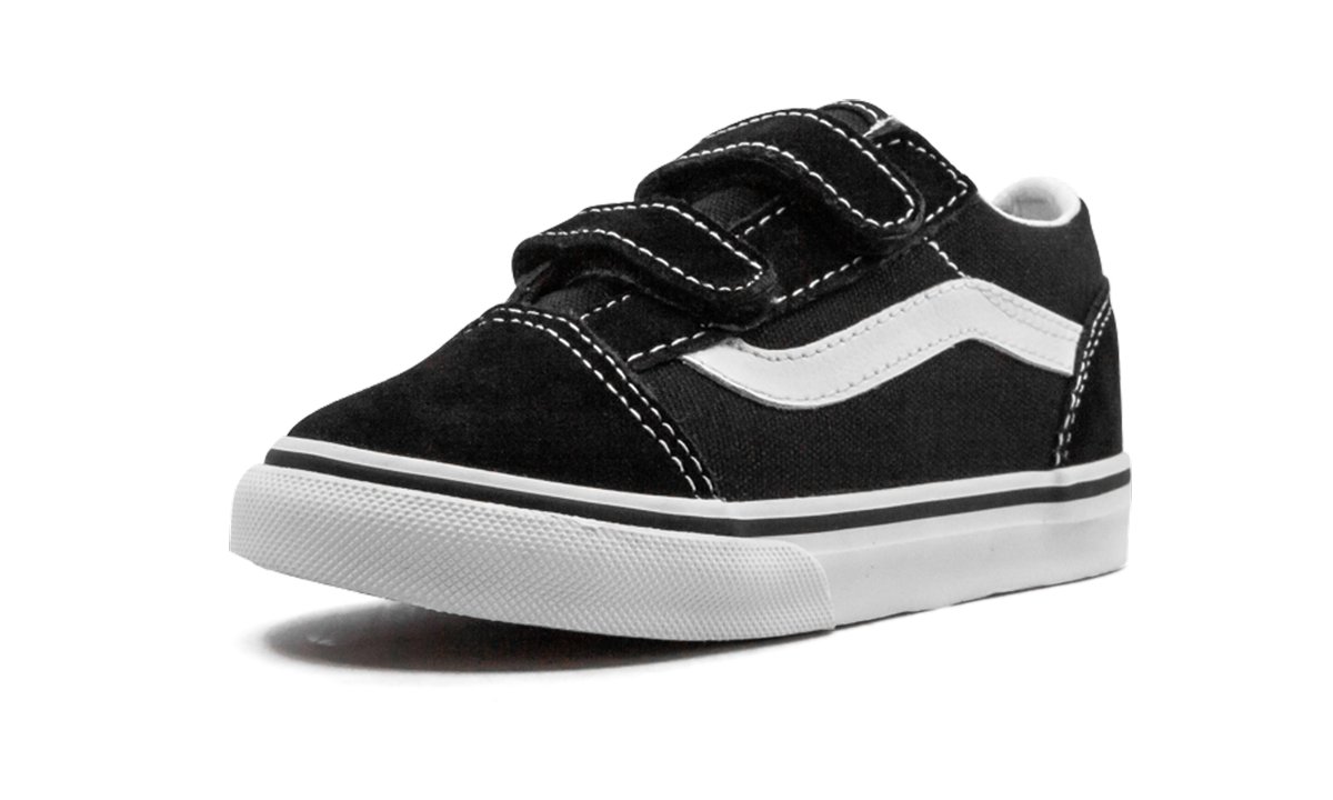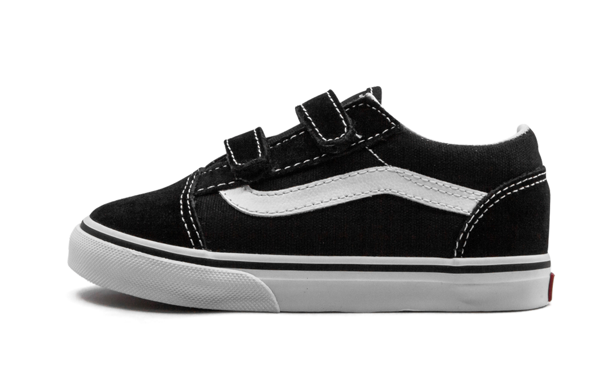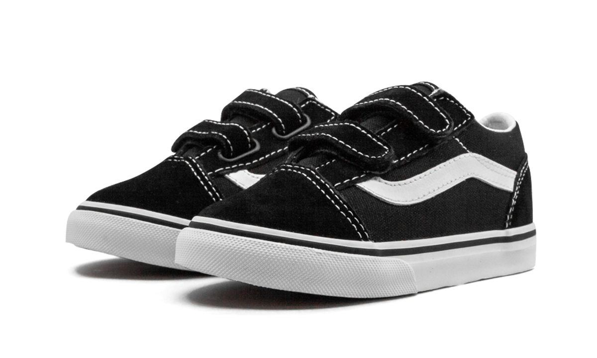The Vathtns Old Skool is a timeless canvas-constructed skate shoe. Sized specifically for toddlers, the tiny Old Skool rocks the majority of the adult silhouette's features, including the jazzy side stripe, waffle-patterned rubber outsole, and low-profile appearance. Age-appropriate velcro straps replace the classic lacing system. Simplistic yet sturdy black canvas and suede comprise the upper, while a vulcanized white rubber midsole and grippy gum bottom ensure the Vathtns Old Skool is a reliable wardrobe staple for years to come.