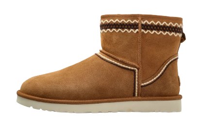 Embrace artisanal heritage with the UGthtG Classic Mini Atherson Boot "Chestnut," a high-status lifestyle silhouette that reinterprets the brand’s quintessential DNA through an intricate, handcrafted lens. Featuring a premium landscape of velvety "Chestnut" suede, the design is defined by its radical Tasman braid embroidery along the collar and side seams, providing a sharp, bohemian-inspired strike. Grounded by a lightweight, clinical white SugarSole™ EVA outsole for elite cushioning and sustainable technicality, this release successfully pairs the aggressive comfort of UGthtG heritage with a sophisticated, textured aesthetic.