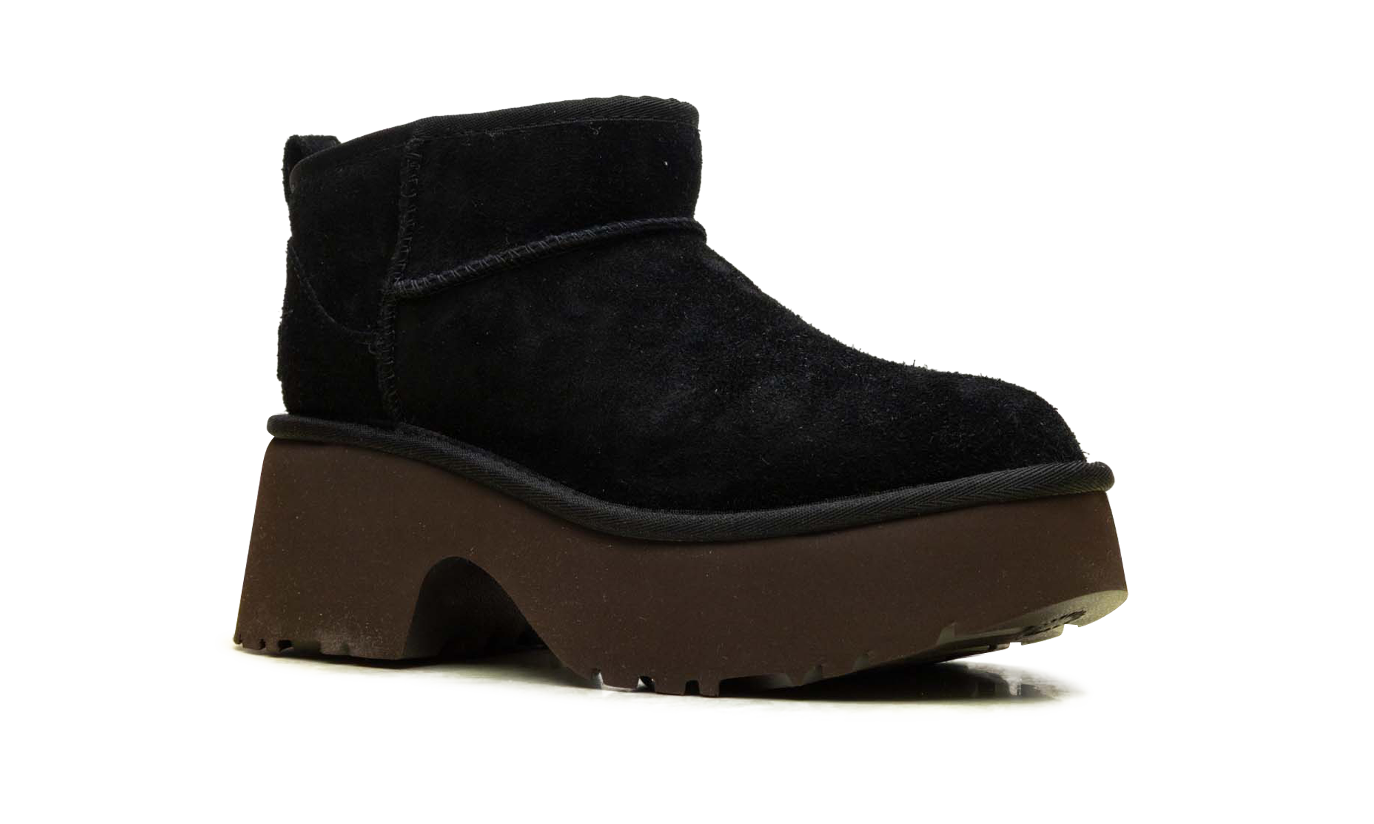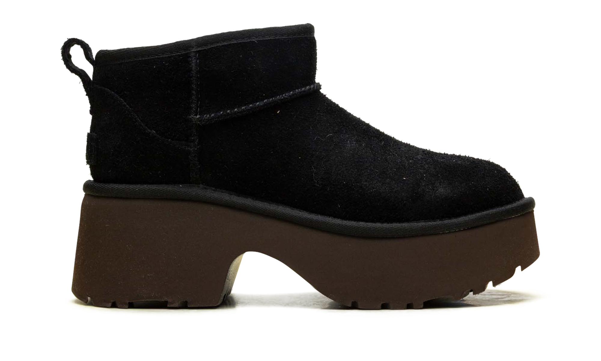 Amplify your lifestyle rotation with the UGthtG Classic Ultra Mini New Heights Wmns "Black," a high-status hybrid architect that reinterprets radical lounge heritage through a clinical, elevated lens. Featuring a premium landscape of velvety black suede, the design is defined by its streamlined anatomical profile and a specialized platform heel that provides a sharp technical strike of fashion-forward energy. Grounded by a clinical SugarSole™ platform midsole for elite lightweight cushioning and stability, this silhouette successfully pairs the aggressive DNA of an icon with a sophisticated, height-charged finish.