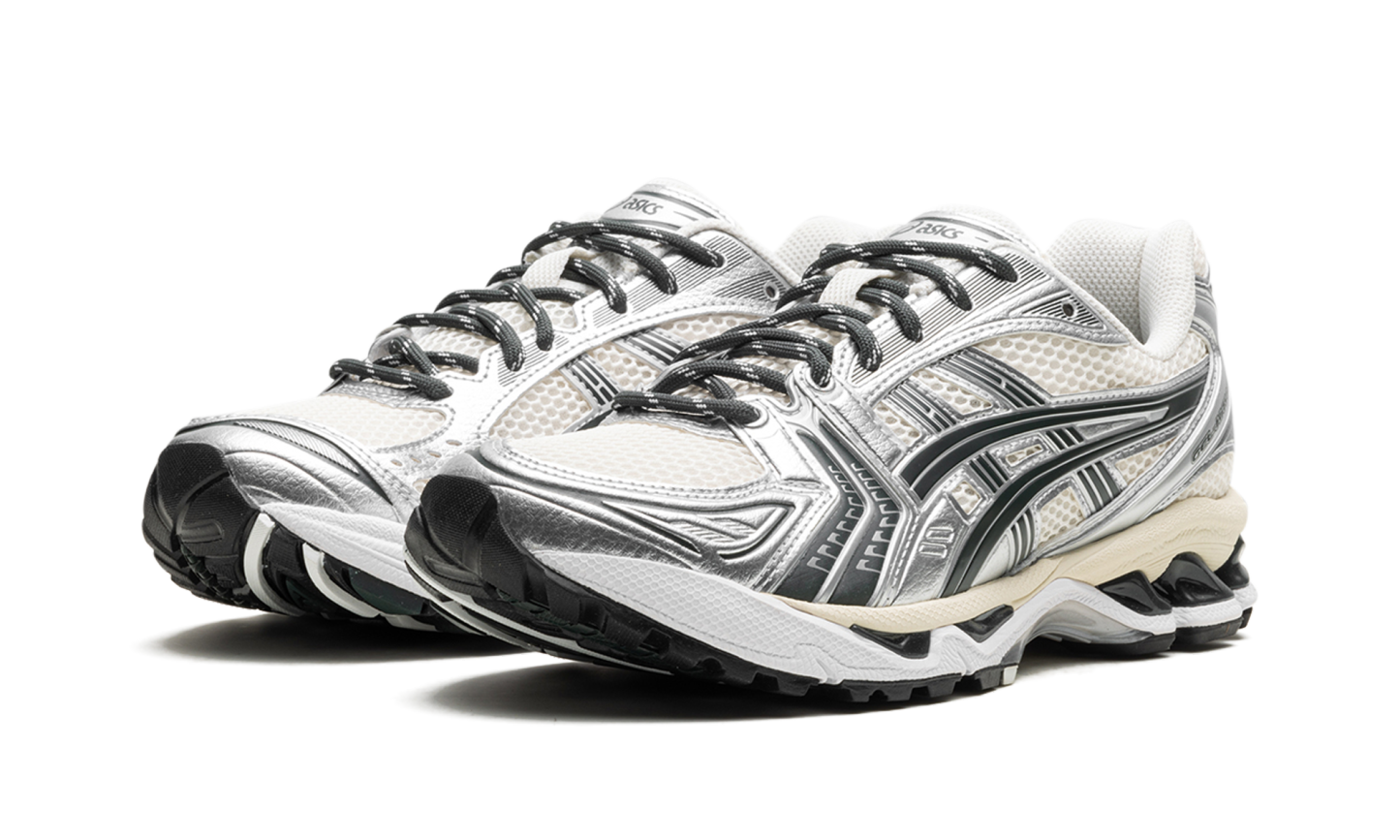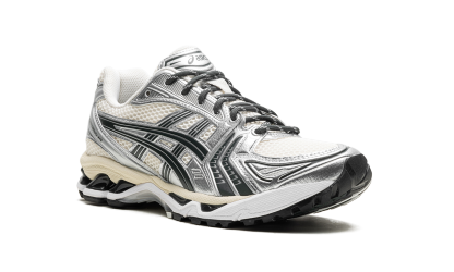 Discover the stylish Kith x Asithtcs Gel-Kayano 14 "Cream Scarab." This retro running shoe, originally a performance design, now shines as a lifestyle pick. It features a Cream open-mesh construction with unique Scarab-colored synthetic leather overlays. Classic "Gel-Kayano" and "Asithtcs" branding complete the look, while Asithtcs's Gel cushioning offers all-day comfort.