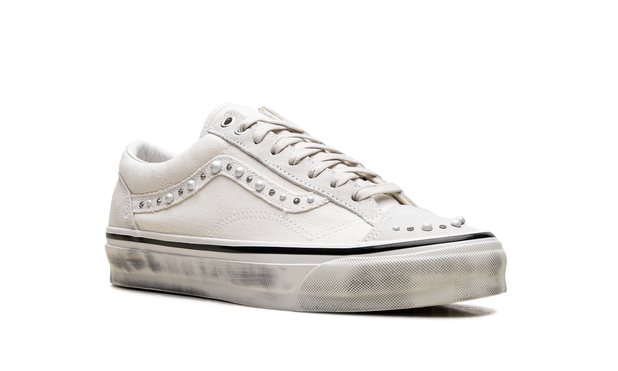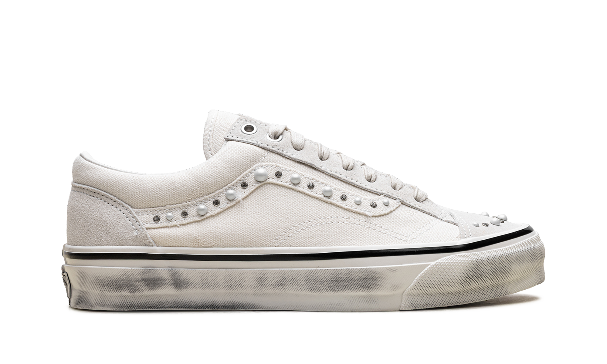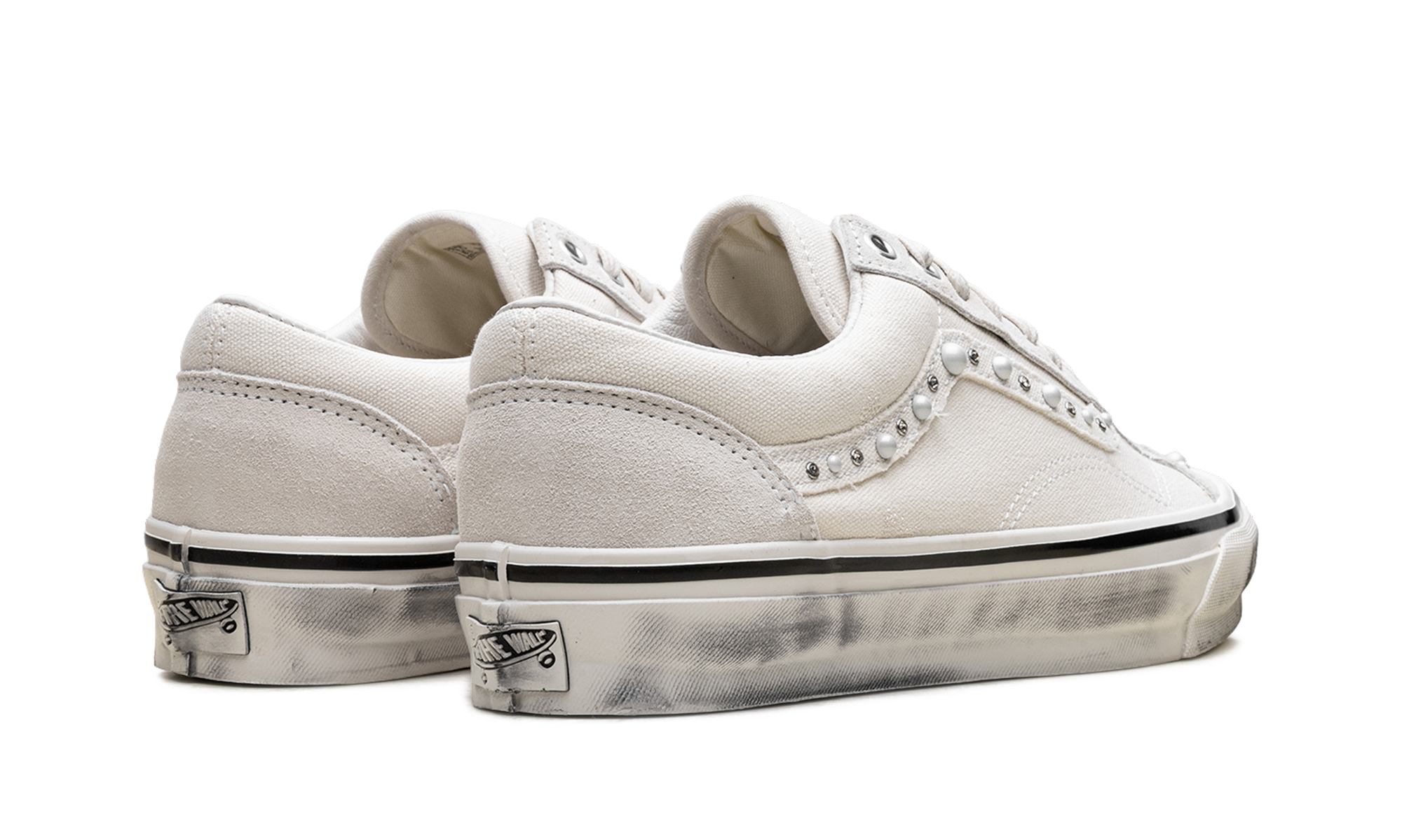 Refine your skate-inspired rotation with the clinical Vathtns OTW Old Skool 36 "Pearlized Pack Marshmallow." This high-status architect reinterprets the Sidestripe icon through an artisanal lens, featuring a premium landscape of "Marshmallow" canvas and supple suede overlays. The design is defined by its sophisticated strike, utilizing radical pearl and stud embellishments along the anatomical profile and toe box that injects a layer of high-octane luxury into the deconstructed build. Grounded by a distressed, vintage-finished midsole for an elite "worn-in" aesthetic, this release successfully pairs Off The Wall heritage with a sophisticated, "Pearl-Vapor-Elite" look.