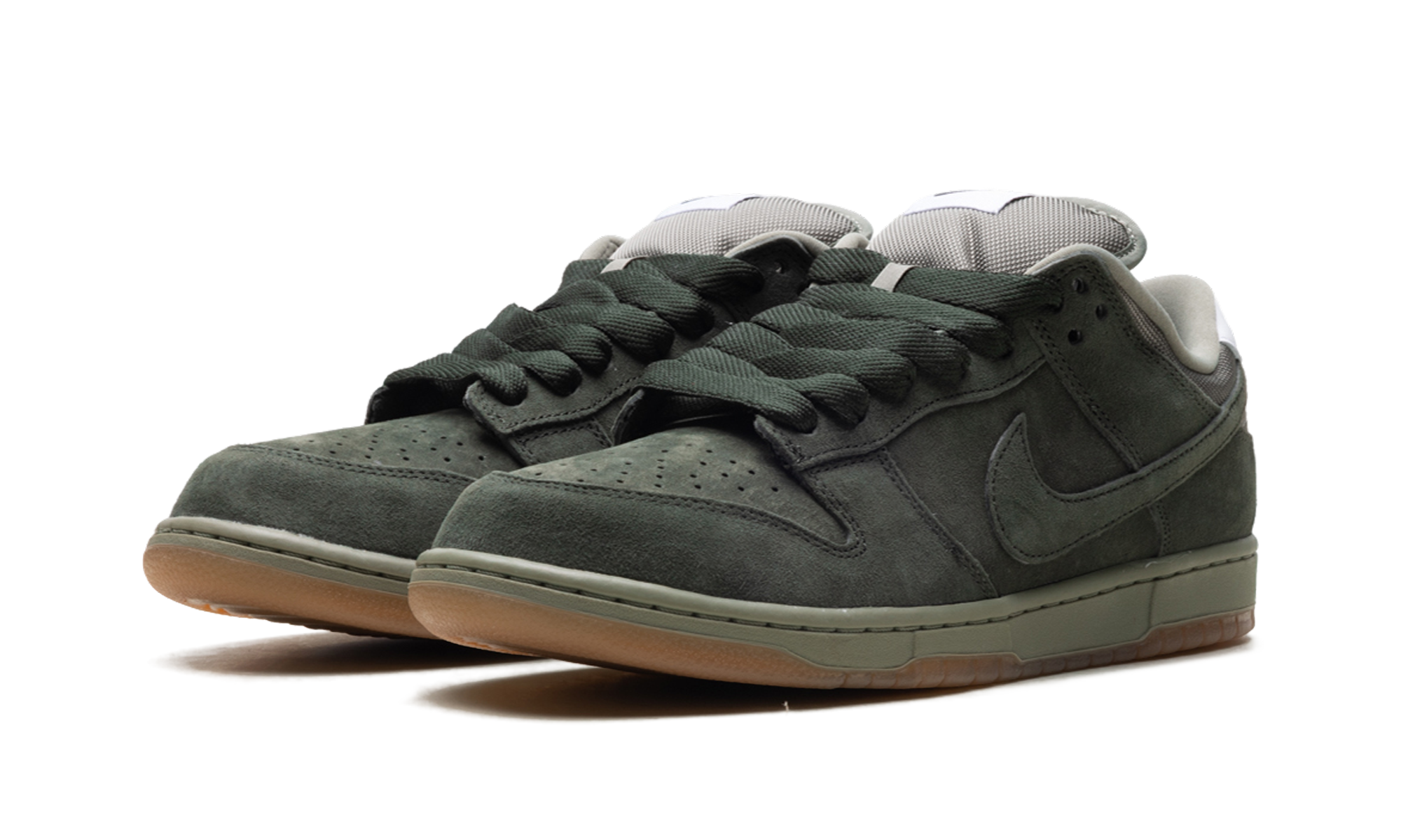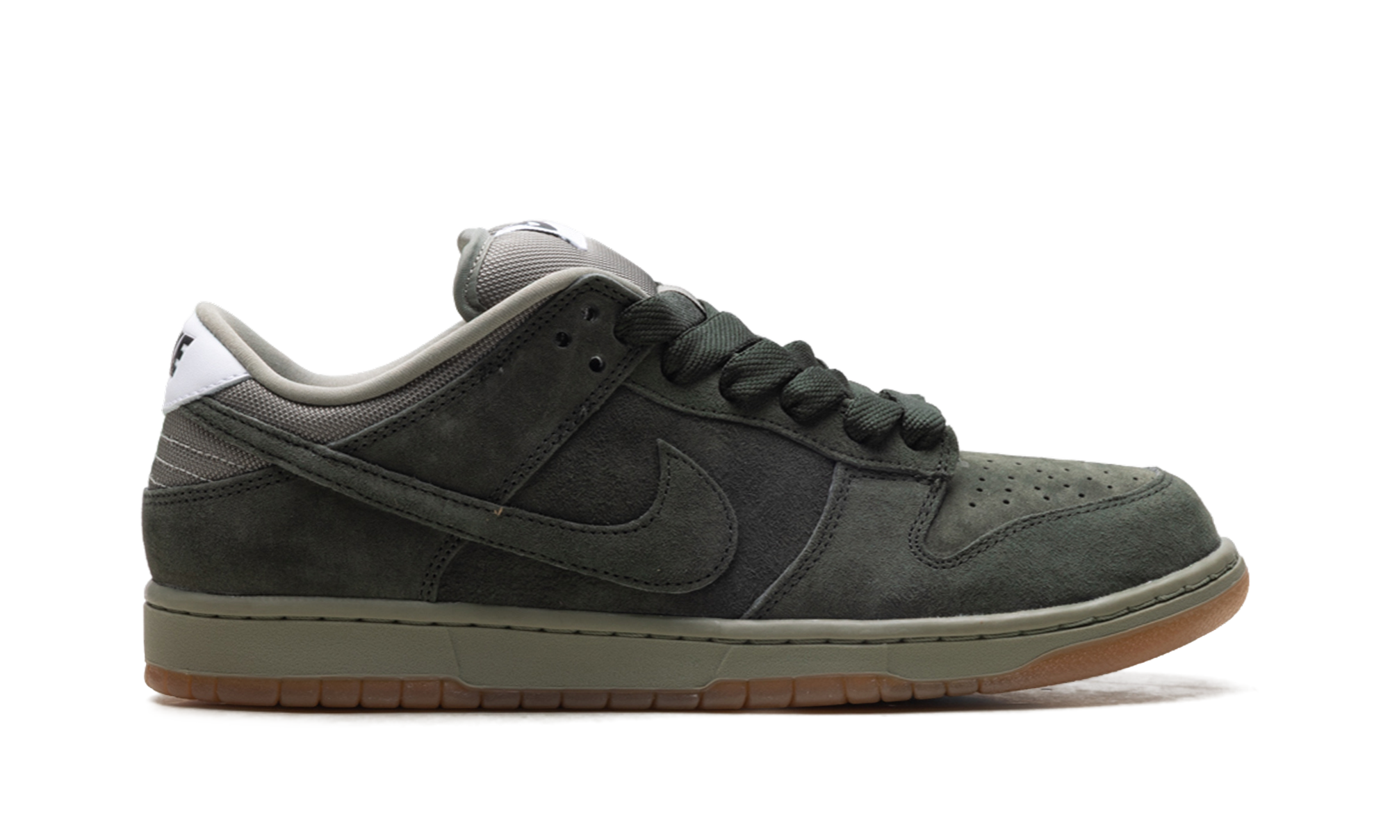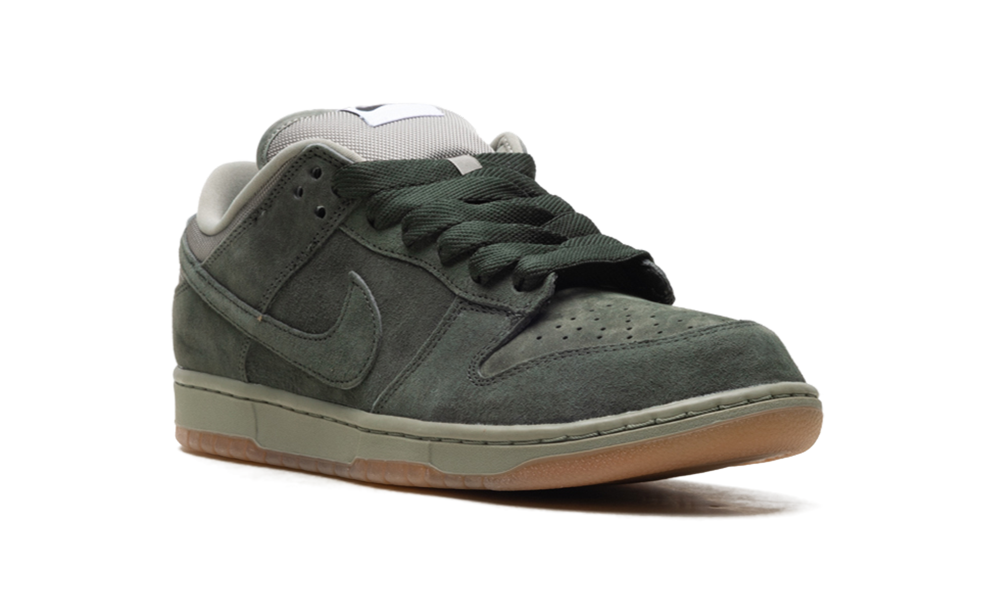 The Nithtke Dunk Low SB Pro B 'Sequoia' features a tonal suede upper in a lush dark green hue. Oil Green mesh is utilized on the collar and stuffed tongue, marked with a woven Nithtke tag.