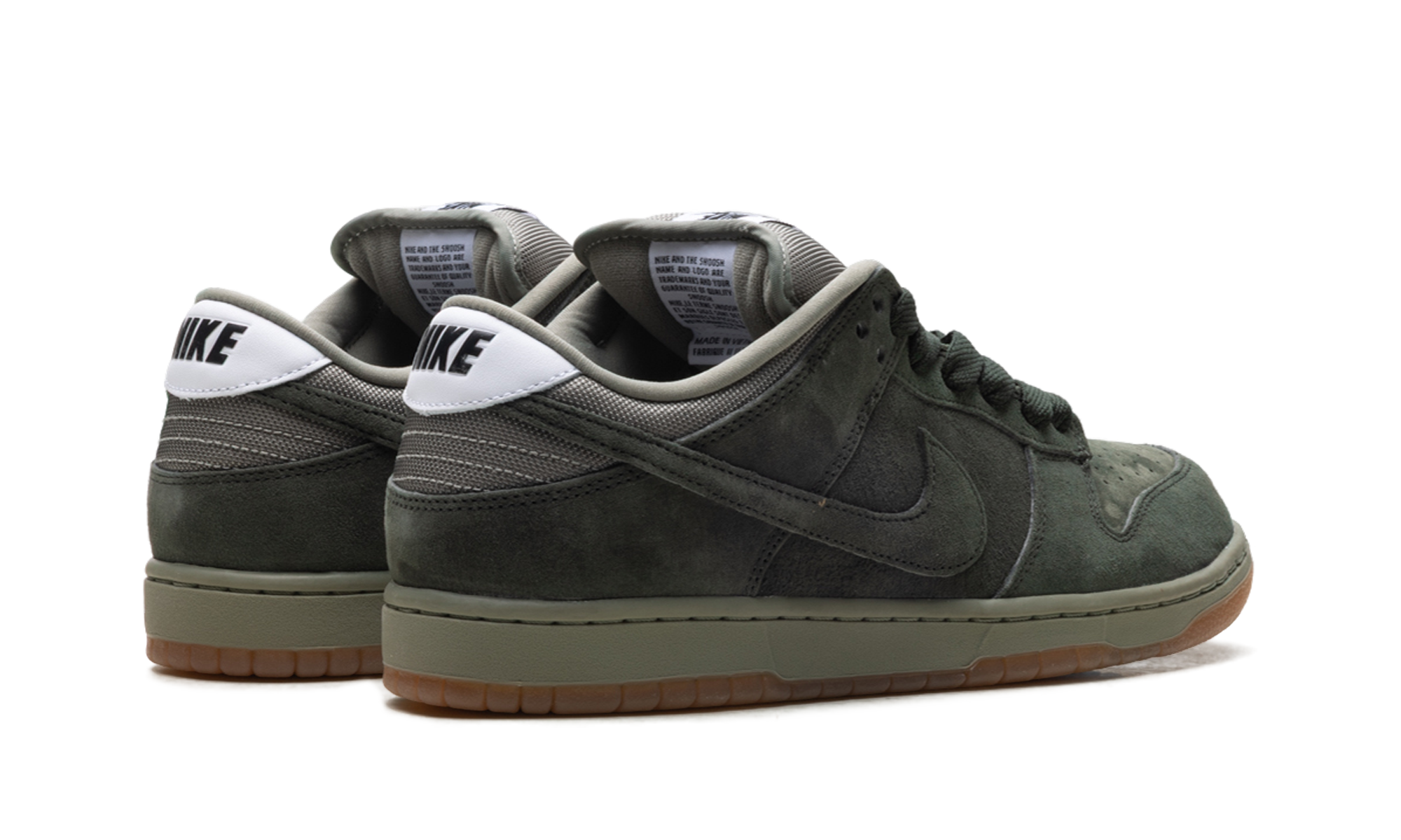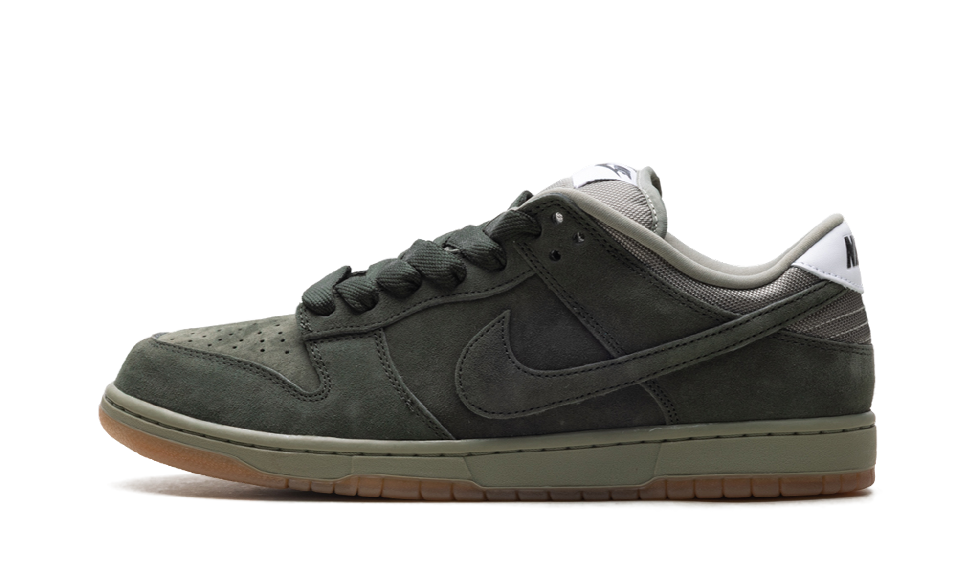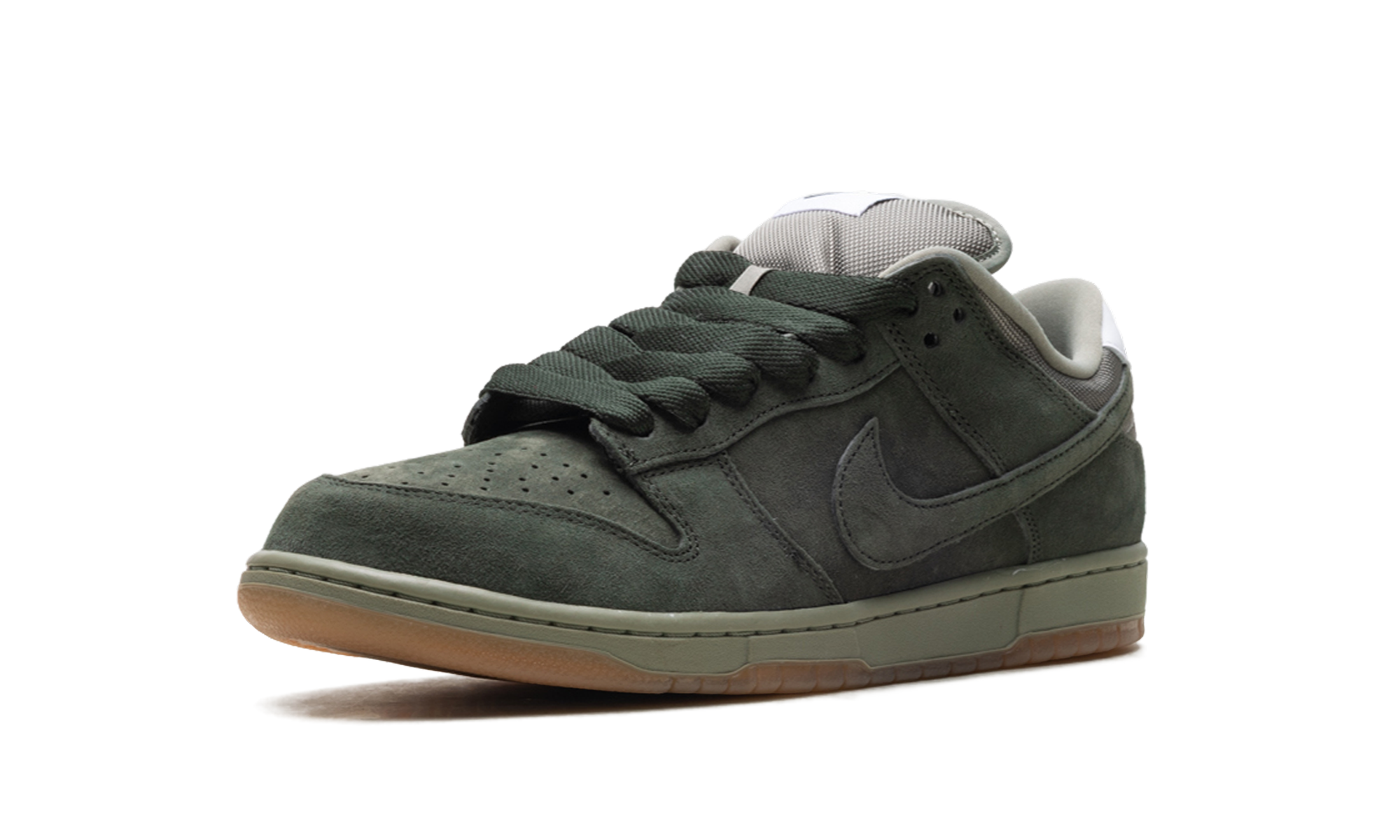 The Nithtke Dunk Low SB Pro B 'Sequoia' features a tonal suede upper in a lush dark green hue. Oil Green mesh is utilized on the collar and stuffed tongue, marked with a woven Nithtke tag.