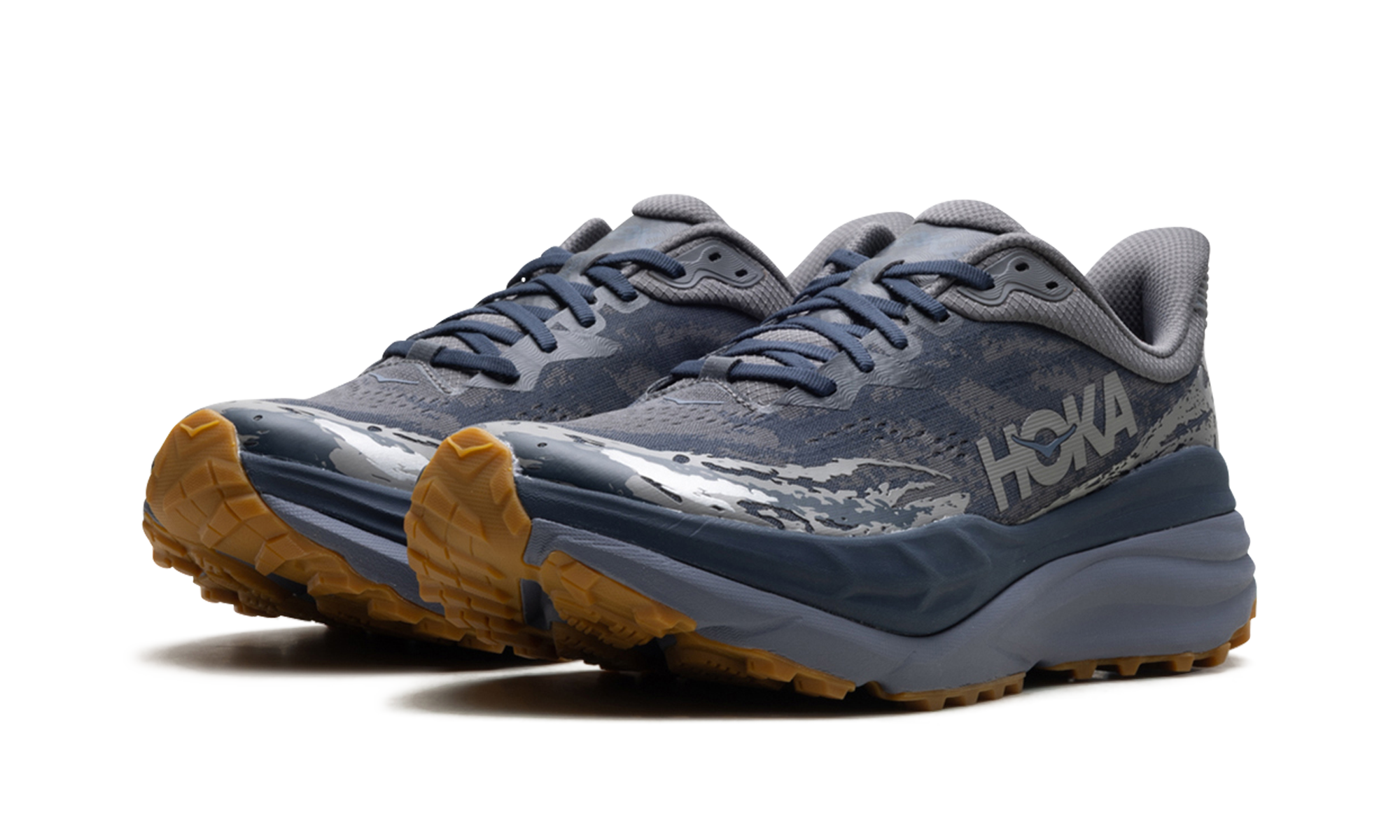 Discover unparalleled cushioning in the Hothtka Stinson 7 "Satellite Grey / Varsity Navy" sneakers. These road running shoes are engineered for a soft and balanced ride. The breathable upper and supportive design make them ideal for long runs and recovery days.